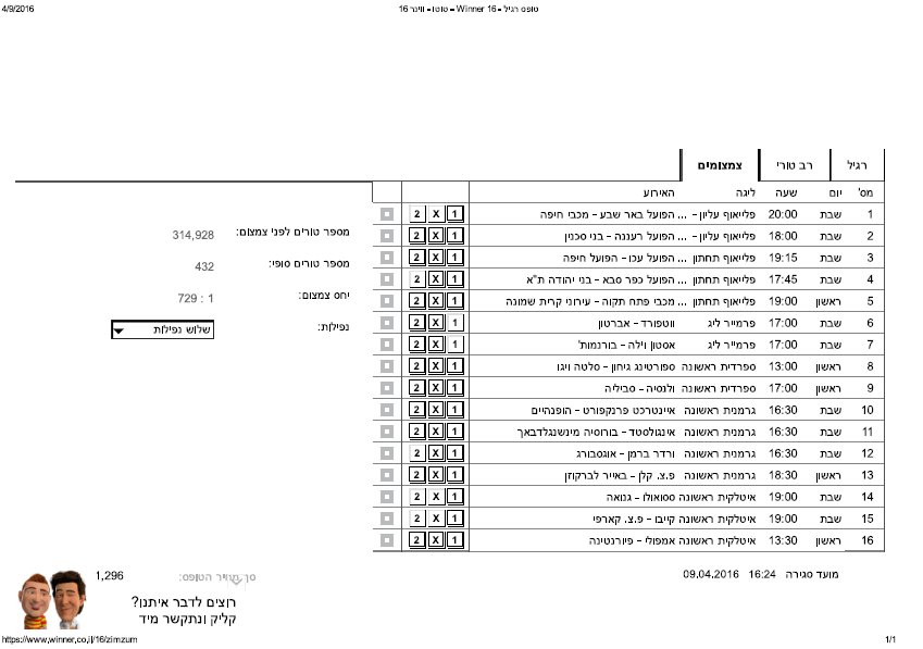 ווינר 16: באזור זה מוצג טופס ווינר 16.